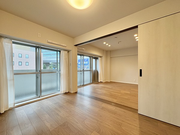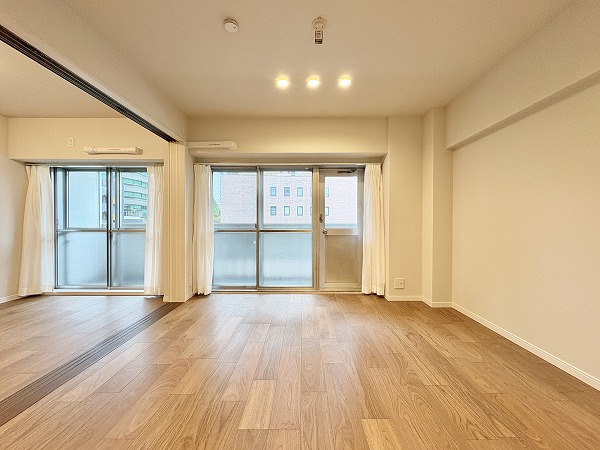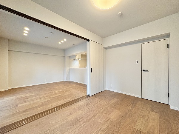 アクセス至便な立地とデザイン性の高さが魅力的な『NK渋谷コータース』。二重のオートロック&ディンプルキーを採用しており、防犯性の高さも魅力的です。こちらのお部屋は6階に位置する、専有面積52.77㎡の2LDK。今回内装の新規フルリノベーションが行われました✧とてもシンプルな白×木目調ベースのデザインで、住む人と家具のデザインを選びません。リビングダイニングキッチンと隣接する洋室を繋げて1LDK感覚で使うことも可能です。ご家族の状況に合わせて柔軟にレイアウトを変えられるのが良いですね。長く住むうちにインテリアを変えたくなった時も、このくらいシンプルだと家具選びがしやすいのではないでしょうか。大通り沿いですが、二重サッシが採用されているので防音性もGood◎ぜひ一度現地でご覧ください。 ライター:yuki【25K14】