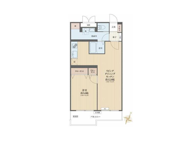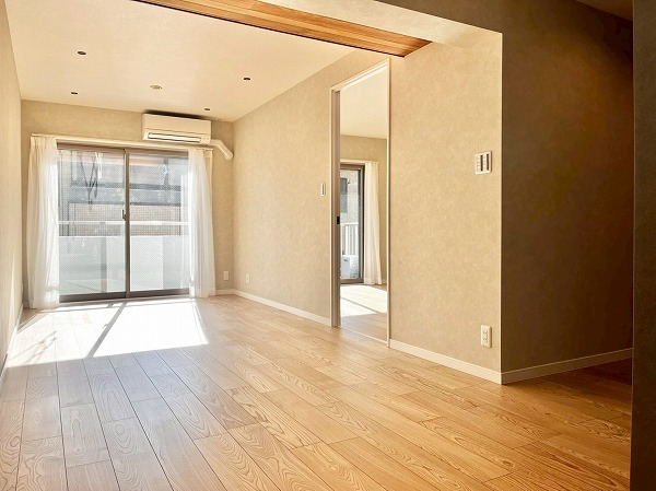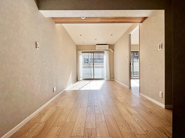 南東を向いたメインルームは、大きめの窓が光を取り込みお部屋の奥までしっかりと明るさを届けます。バルコニーへはLDK・隣接する洋室の両方から出入りできるため幅に余裕があり、大きめのお洗濯物を干す際にも活躍してくれそうです。