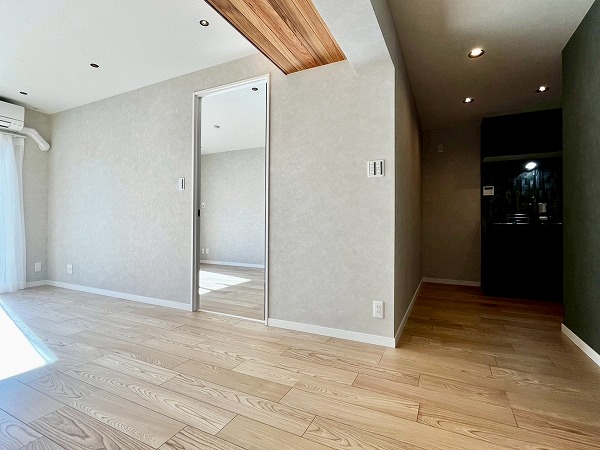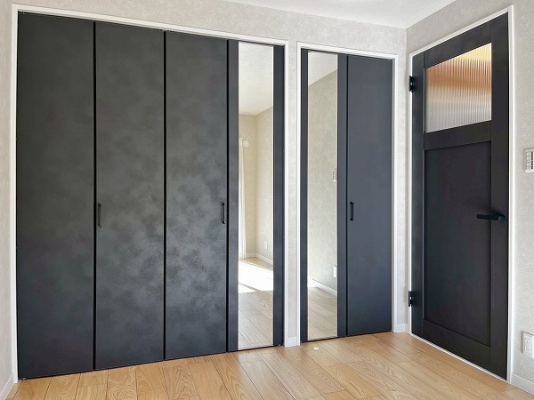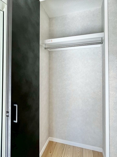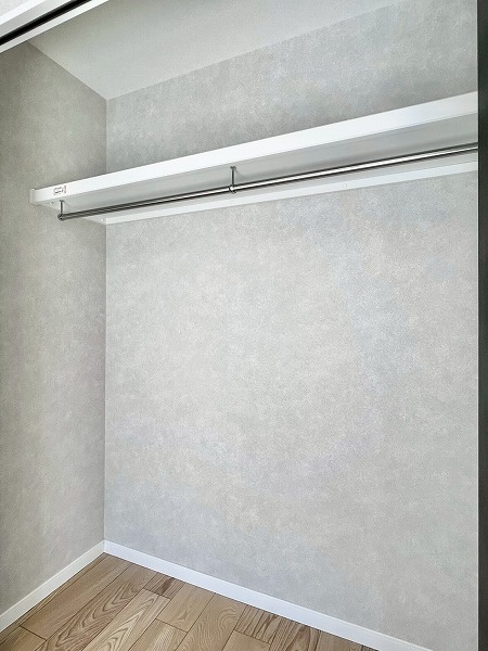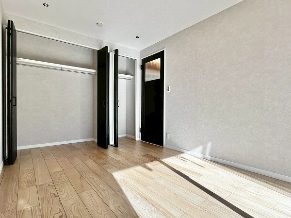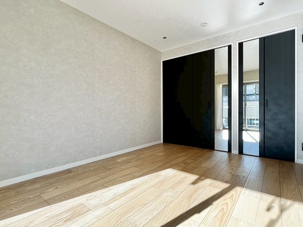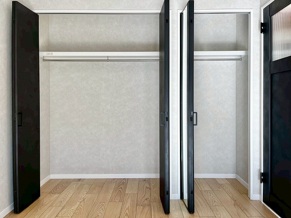 LDKに隣接する洋室にはクローゼットを2つに分けて設置し、カテゴリーや使用頻度など生活スタイルに合わせて使い分けることができます。前面にミラーが付いているおかげで、別で鏡を置くスペースを取らないのがうれしいですね。お部屋を広く見せてくれる効果もあり、一石二鳥の有能さが◎