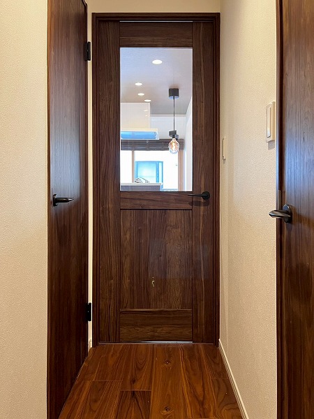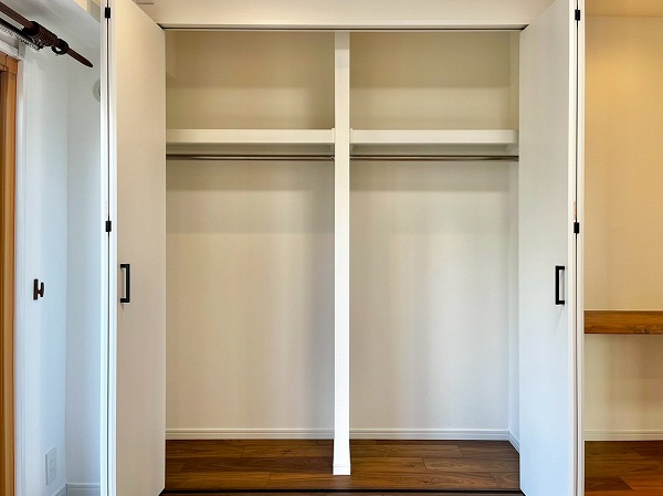 玄関を入った左手には、奥行きがたっぷり取られたシューズインクロークがありました。高さを自由自在に調節できそうなので、高さのあるブーツはもちろんのこと、大きめのアウトドア用品など、趣味の物も収納できそうな優秀な空間です。