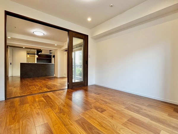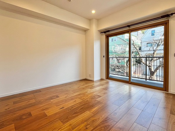 洋室からは東向きのバルコニーに出ることができます。目の前を丸子川が流れており、春になると桜も見えるそう✿遮るものがない開放的な眺めは、なんとも贅沢な気分になりますね。1年を通して気持ちの良い風景を届けてくれそうです。