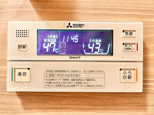 バスルームの壁には木目調のパネルを採用し、森の中でくつろいでいるようなバスタイムを演出します。追い焚き機能を使って自分好みの温度に調節すれば、たっぷりとお湯に浸かる極上のリラックスタイムになりそうです。