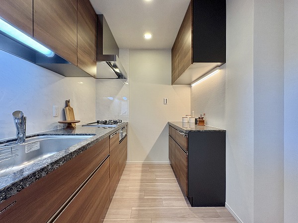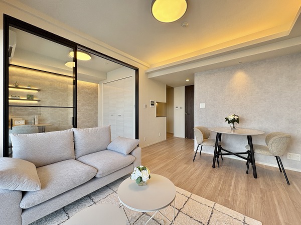 買い物至便でオシャレな雰囲気が人気の三軒茶屋駅、駒沢大学駅が徒歩圏内の好立地マンションをご紹介。大通り沿いに佇むスタイリッシュな外観の『グランスイート三軒茶屋スカイテラス』は、総戸数52戸の新耐震基準適合マンションです。ご紹介のお部屋は3階部分に位置する、ペットと暮らせる2LDK。2024年9月末に新規内装リノベーションが完了し、クロスは全室貼り替られ隅々までピカピカに生まれ変わりました。メインとなるリビングダイニング+キッチンスペースを足すと、おおよそ18.6帖の広々とした空間となり、開放感に満ちています。どんな色の家具やカーテンも合わせやすいシンプルでスタイリッシュな内装デザインなので、季節に合わせたインテリアをお楽しみいただけそう。南東向きに位置する窓からはたっぷりの採光が入り、お部屋全体が明るく暖かな印象。バルコニーも広々としていて、洗濯物も思い切り干せます。是非一度ご内見にいらして下さいね。 ライター:rei【24K29】