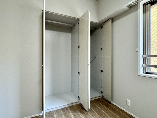 2面のクローゼットが配置された洋室は、主寝室としてゆとりある使い心地。衣類や小物をジャンルごとに整理できるのでお部屋全体が散らかりにくく、気持ちよく眠りにつけます。こちらにも窓があり、家全体が明るく風通し良好。毎日の暮らしがいきいきと感じられる環境が整っています。