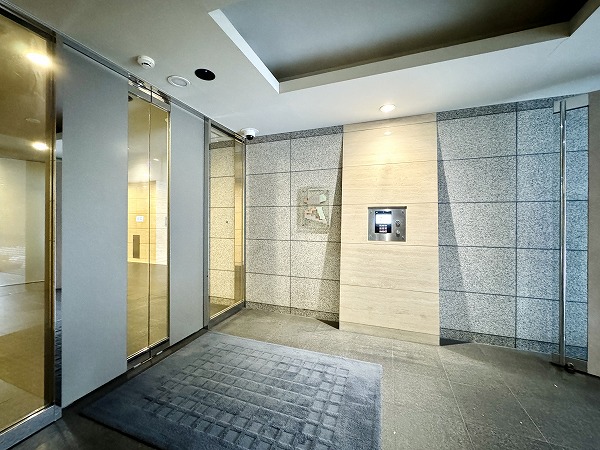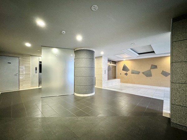 オートロックを抜けると、広々とした開放的なエントランスロビーが迎えてくれます。オレンジの壁面に石が埋め込まれたデザイン性あふれる空間は、ただ通るだけでも気分が華やぎ、日々の暮らしに彩りを添えてくれます。まるでホテルのような上質な雰囲気が、住まう人を優雅に包み込むエントランスです。
