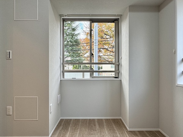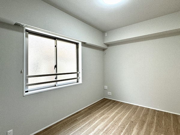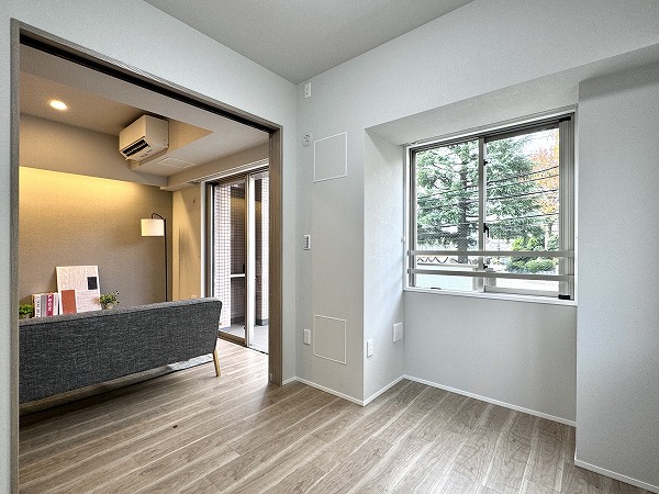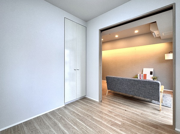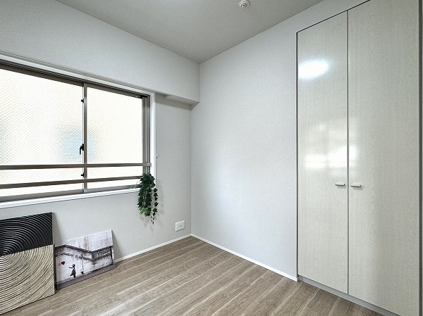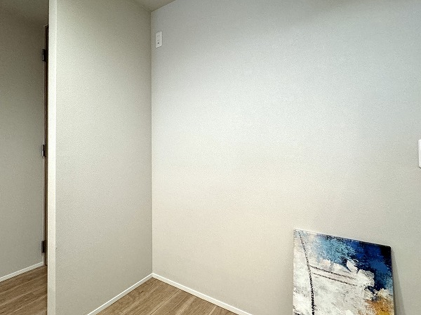 2面から光が差し込む南西側の洋室は、あたたかな日差しが穏やかに広がる癒しの空間。日中は自然光だけで十分な明るさが保たれ、心まで軽くなるような居心地を感じられます。窓際のカウンターはディスプレイスペースとして使えるほか、ちょっとした作業にも便利そう◎