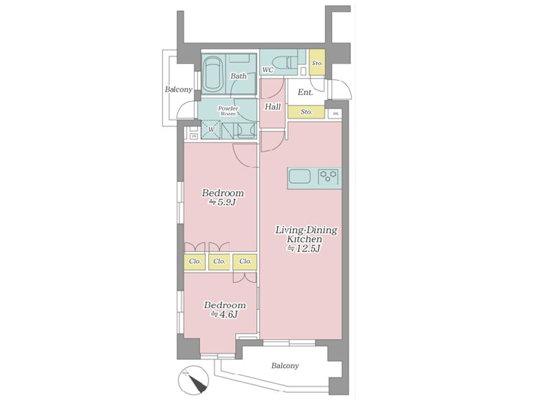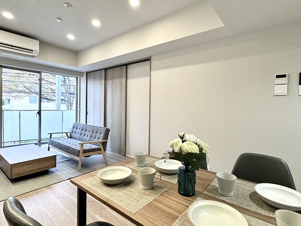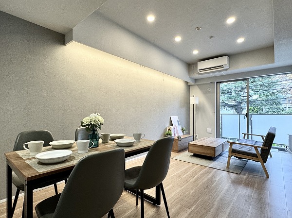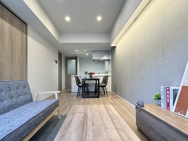 1人暮らしにも2人暮らしにも、家族との新しい暮らしにも寄り添ってくれる万能な2LDK。室内はフルリノベーションが施され、新築のような心地よい清潔感に包まれます。淡いグレーと温度感のある木の組み合わせが、ナチュラルで居心地のいい空間を構築。どんなライフスタイルにも馴染み、毎日を穏やかに彩ってくれる住まいです。