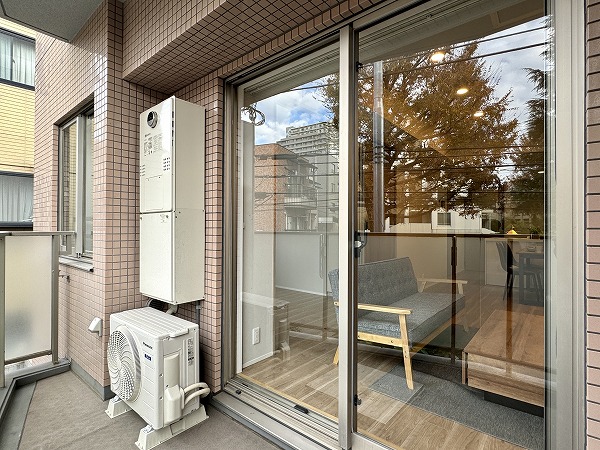 長方形に伸びるメインルームは、家具の配置がしやすく、生活動線も綺麗に整えやすいのが魅力です。バルコニーに面したワイドな窓が空間に奥行きをもたらし、外の光や風を取り込みながらゆったりと過ごせる開放的な雰囲気。夏は風が心地よく抜け、冬は床暖房がじんわりと暖めてくれるため、1年を通して穏やかで快適な時間が流れます♪