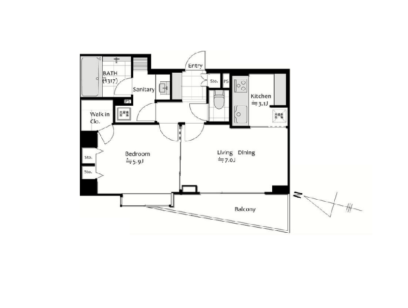 長方形に伸びるメインルームは、家具の配置がしやすく、生活動線も綺麗に整えやすいのが魅力です。バルコニーに面したワイドな窓が空間に奥行きをもたらし、外の光や風を取り込みながらゆったりと過ごせる開放的な雰囲気。夏は風が心地よく抜け、冬は床暖房がじんわりと暖めてくれるため、1年を通して穏やかで快適な時間が流れます♪