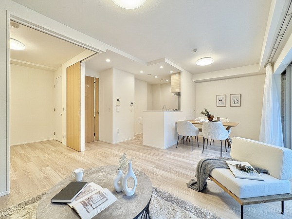 ご紹介するのは、1階に位置する72.51㎡の3LDK。ファミリーでの暮らしにぴったりの広さを誇ります。2025年10月にリノベーションが施され、新築同様の美しさを実現。室内は明るく爽やかなトーンでまとめられ、壁や建具、床まで丁寧に仕上げられており清潔感と快適さが際立つ空間に生まれ変わりました。