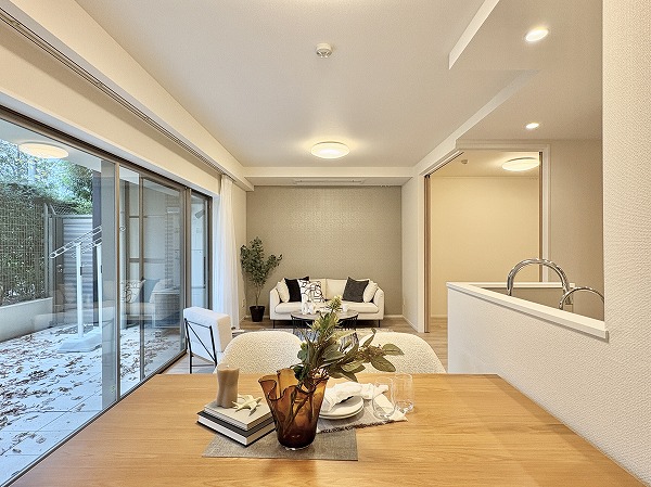 今回訪れたのは、池尻大橋駅から徒歩8分の場所に佇む『クラッシィハウス世田谷公園』。渋谷にも近く利便性が高い一方で、落ち着いた街並みが広がる魅力的なエリアです。ご紹介するのは1階に位置する3LDKのお部屋で、専有面積は72.51㎡とゆとりある広さ。お子様のいるご家庭でも快適に暮らせる空間です。室内はリノベーションが施されており、新築のような清潔感と明るさが際立っていました。シンプルな内装ながらピクチャーレールが設置されているため、アートや写真を飾って華やかさを加えることも可能。どんなテイストのインテリアとも相性が良く自分好みの空間づくりが楽しめそうです♪約5.0帖の洋室はメインルームと廊下のどちらからもアクセス可能。スライドドアを開ければリビングとつながり、家事をしながらお子様を見守れるキッズスペースとしてもぴったりです。また、テラスは西向きで柔らかい陽光が差し込み、爽やかなグリーンで目隠しされているため1階でも安心してアウトドア空間を楽しめます。気になる方はぜひ現地で、その快適さを体感してみてくださいね。 ライター:hana【25K14】