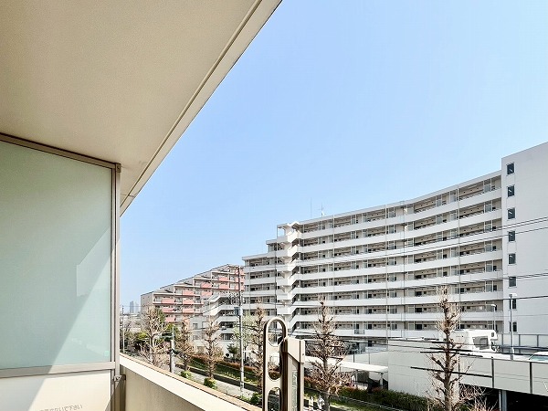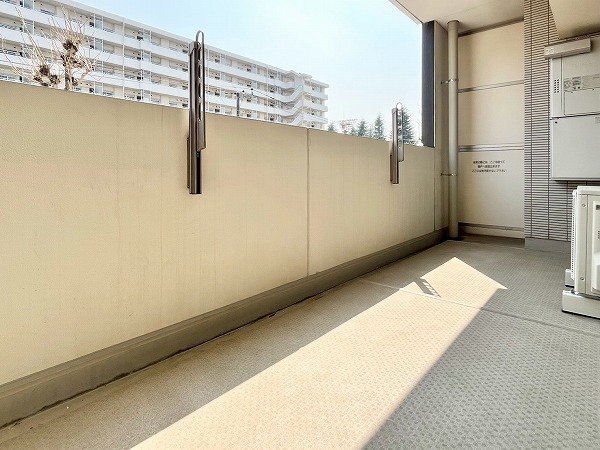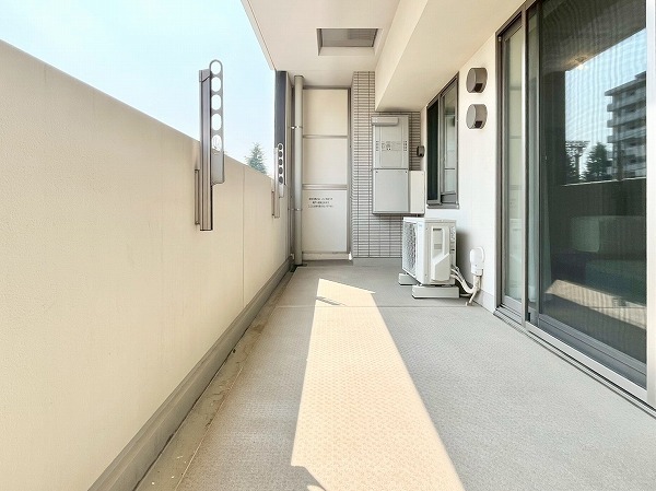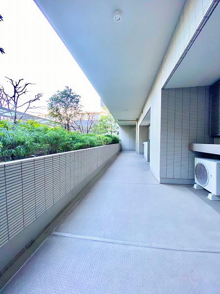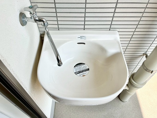 明るく陽当たりの良いバルコニーはお洗濯物を干せばよく乾き、ちょっとした気分転換にも最適。低層の住宅街と街路樹が程よく見え、都心の喧騒を忘れる落ち着きと静けさが感じられました。バルコニーの端にはスロップシンクが設けられており、ペットと遊んだ後や植物の水やりなどに使えて便利です。