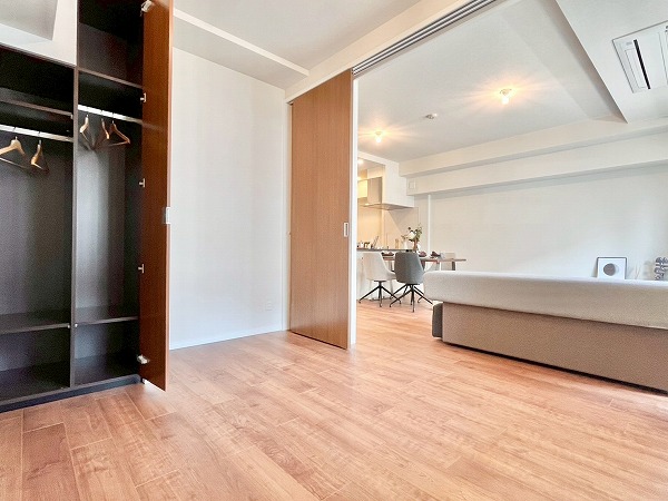 1番大きな洋室は7帖あり、大きなベッドを置いてゆっくりと身体を休められる環境。ウォークインクローゼットは中が広く、見やすい造りで、コーディネートを組む際に必要なお洋服やカバンなどをまとめてしまっておけ、効率的です。