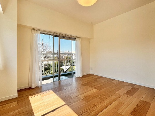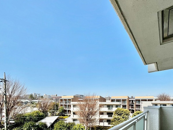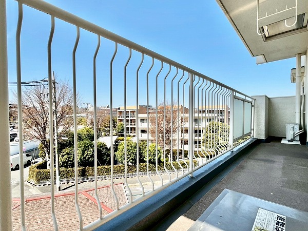南東向きのバルコニーは、朝日を存分に浴びられる明るい空間。目の前に広がる太陽の光が室内に差し込み、写真からも伝わる日当たりの良さは気持ちまで晴れやかにしてくれます。洗濯物もよく乾きそうですね。
