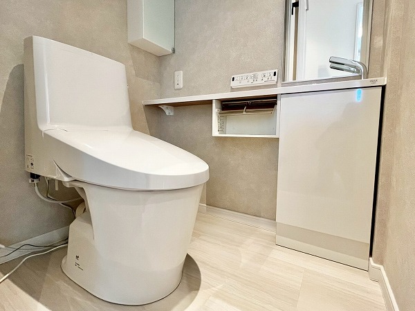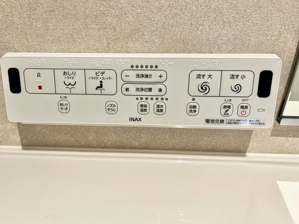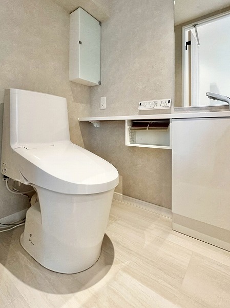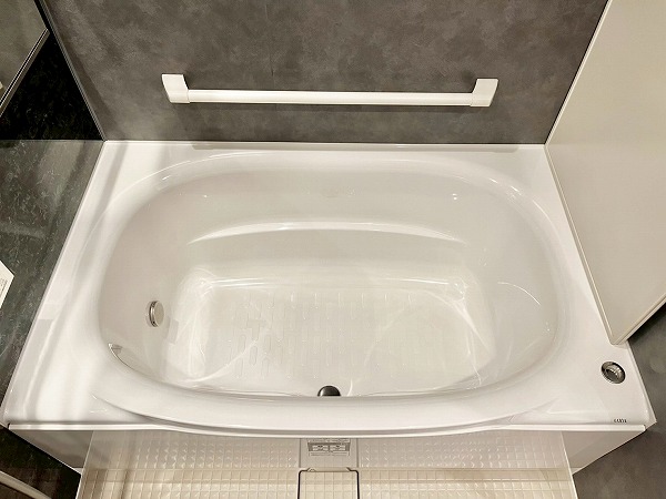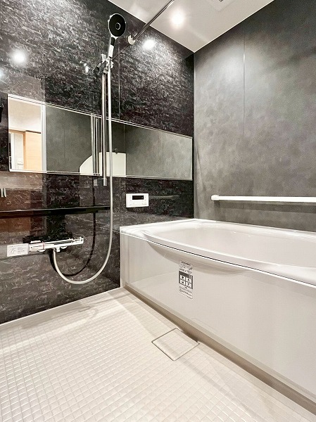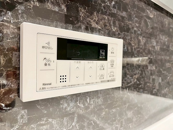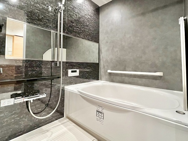 バスルームには追い焚き機能を搭載し、個人の好きな湯温に調節することができます。石調のパネルが落ち着きを醸し出し、まるで温泉旅館にでも来たかのようなリラックスタイムが楽しめそうですね。お洗濯物が乾きにくい季節には浴室乾燥を使って乾かすことができます。