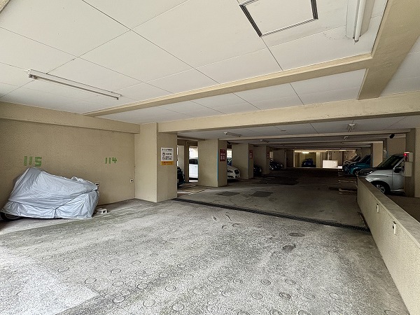 駐車場はビルトインタイプで、雨や黄砂から愛車を守れるのが魅力。スペースも広めで駐車しやすく、日々の利用も快適です。