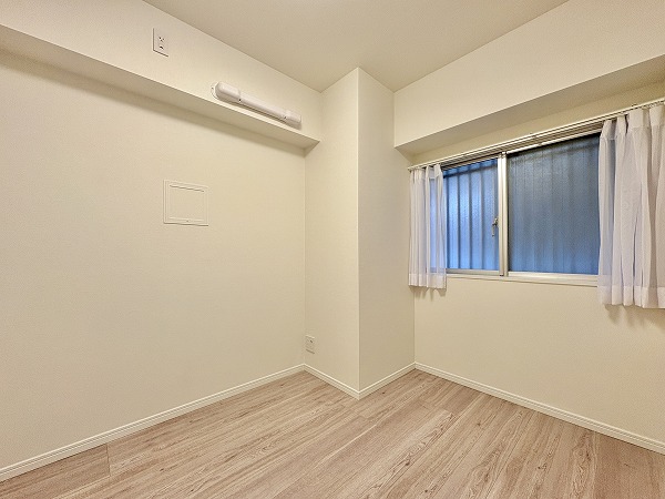 洋室は約4.1帖で、天井が高く空間に余裕があるため圧迫感を感じません。シングルベッドを置いても、デスクやドレッサーを配置できる十分な広さがあります。また、小型クローゼットも完備し、お子様の勉強スペースや在宅ワーク用の書斎としても活用できる一室です。