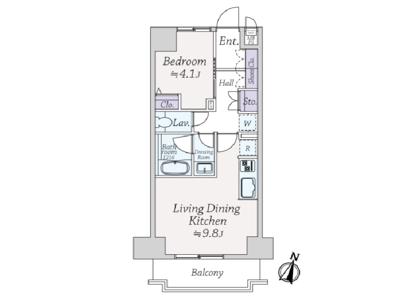 南向きに設けられた5.02㎡のバルコニーは、陽当たりと風通しが良く、明るく開放的な空間です。日々の洗濯物を無理なく干せるゆとりのある広さがあり、太陽の光でしっかり乾きそう。外の景色を楽しみながらコーヒーを飲むなど、ちょっとしたリラックスタイムにも活用できるのも魅力です。