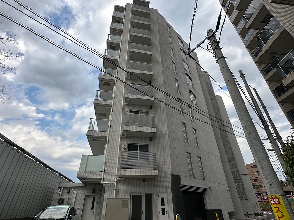 2008年9月築でまだまだ新しい外観、こちらの9階建てマンションが『グランスイート二子玉』です。総戸数は36戸の鉄筋コンクリート造。