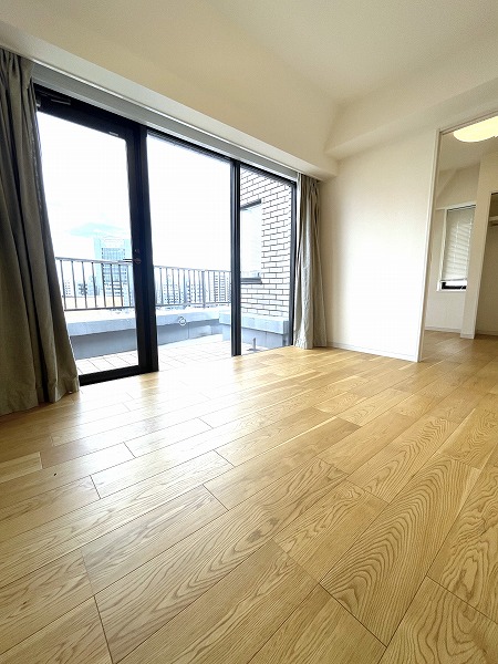 角部屋のため、バルコニーは2ヵ所にあります。ダイニングルームと洋室から出入り可能な約13.43㎡のルーフバルコニーは、この物件のオススメポイントです♡大きな布団を干すこともできとっても便利♪空いているスペースでちょっとした植物を育てるのも良いですね★