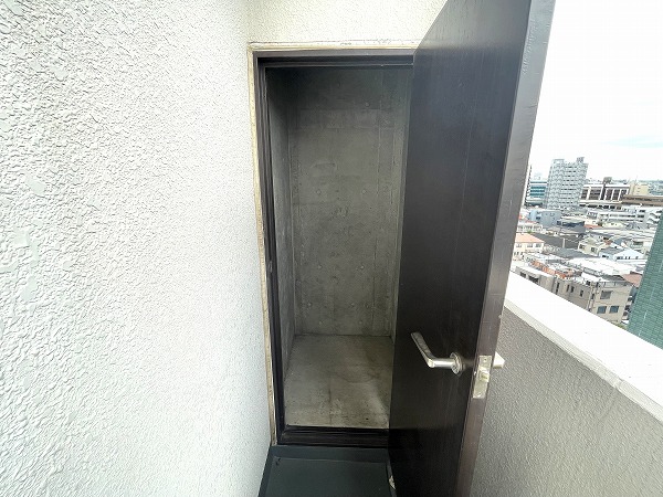 自慢のバルコニーからの景色はご覧の通り♪最上階の恩恵を受け、空を近くに感じられます。お天気の良い日中はリラックスしながらティータイムを、夜は煌びやかな景色を楽しみながらビールで乾杯できちゃうのも最高ですね♪バルコニーには、嬉しい便利なトランクルーム付きです✧
