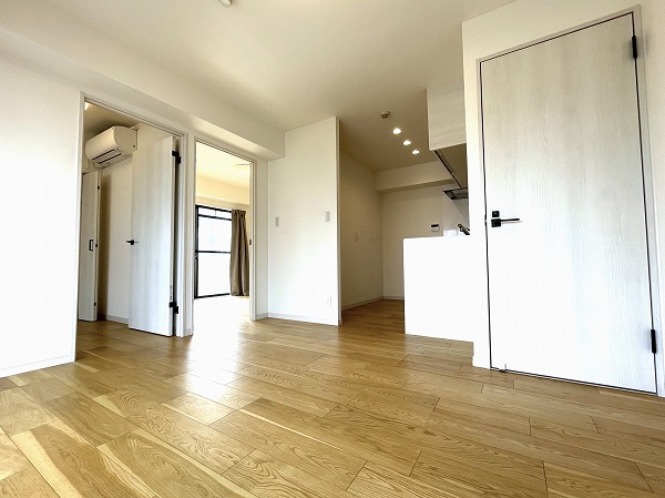 ダイニングルームは約6.5帖。バルコニーに面した大きな窓のおかげで、実際のサイズよりもなんだか広く感じます★ナチュラルなフローリングを採用し、どんな家具とも相性が良さそうです♪今からどんなインテリアにしようか考えるのが楽しみになりますね♡