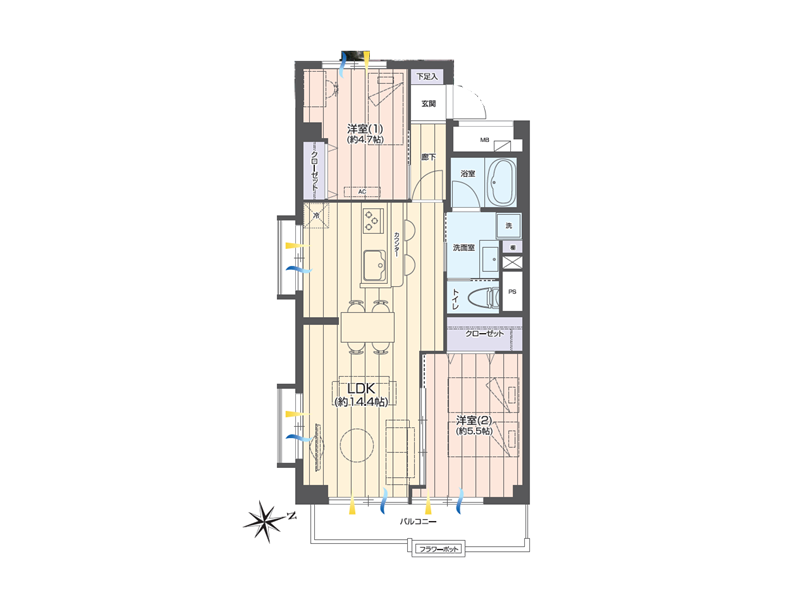 1人での悠々自適な暮らしや、パートナーとの2人暮らしにもぴったりのサイズ感です。