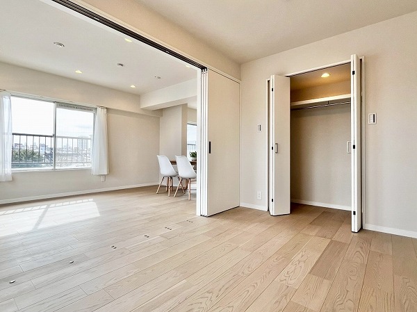 メインルームへ隣接する洋室は、クローゼットを備えており、ベッドルームにも最適。シングルからダブルベッドまでぴったりと収まりそうです。引き戸を開け放しておけば、広々としたワンルームのような使い方もできます。生活スタイルに合わせて自由にアレンジしてみてくださいね✿