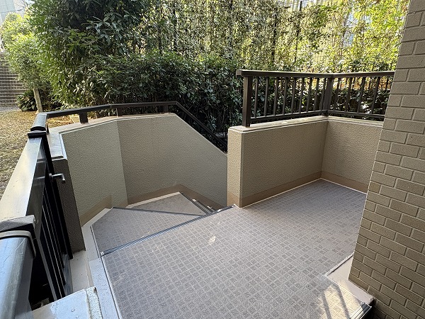 こちらがアプローチです。ゆとりのある歩道に面しており、歩行者と自転車の通行区画も区切られているため、外出時に衝突する危険も少ないです◎