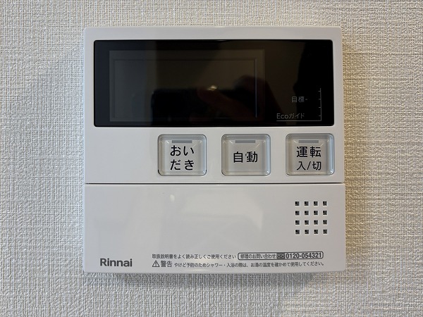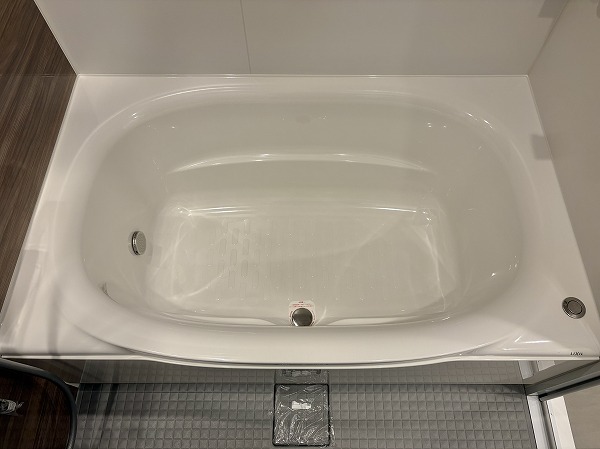 バスルームはこちら。こちらも木目調の壁が視覚的にリラックスさせてくれます。日々の疲れはこのバスルームで回復させましょう。水垢などの汚れが目立ちづらく、お掃除が簡単であるというメリットもあります◎