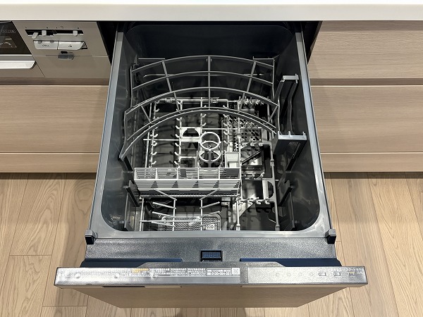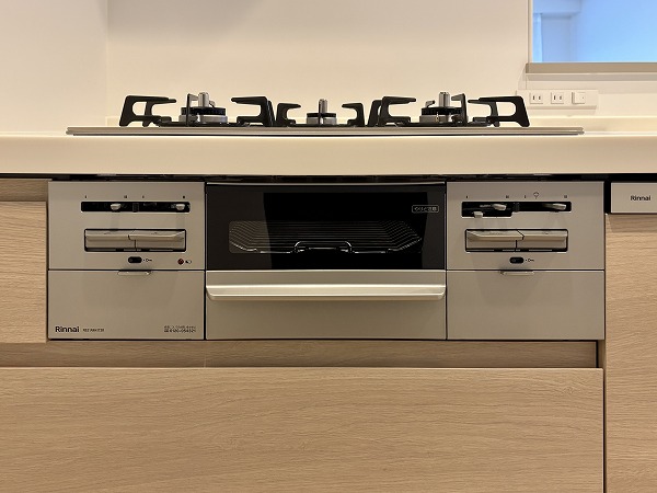 こちらがキッチンです。木目調の温かみのあるカラーリングが素敵で、このキッチンでのお料理はなんだか楽しそう。セミオープンなのでリビングダイニングにいるご家族や友人とのおしゃべりも可能◎思わず入りたくなってしまうキッチンでした♩