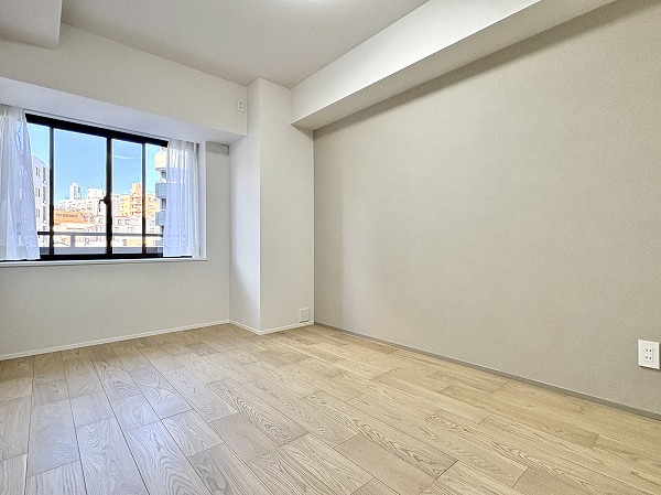 約6帖の洋室はバルコニーに面したお部屋です。西向きの窓からの優しい光が温かく、読書などの趣味に没頭するには最適。寝室として使いながら、デスクや1人用のソファなどを置き、マルチで使えるお部屋にするのが良いでしょう◎