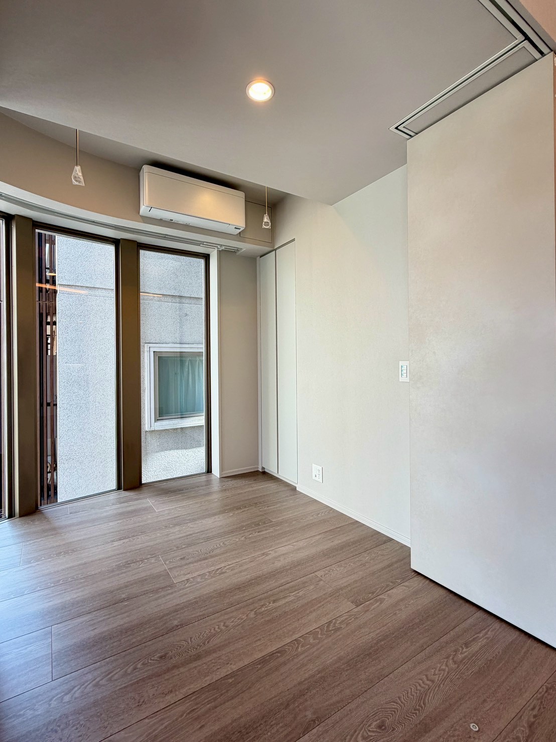 玄関を上がって最初にあるのは、7.1帖程の洋室です。大容量サイズのウォークインクローゼットが備わっているので、衣装持ちの方も安心◎季節もののコートや丈の長いワンピースなども綺麗に保管できます。エアコン付きなのも、嬉しいポイント。