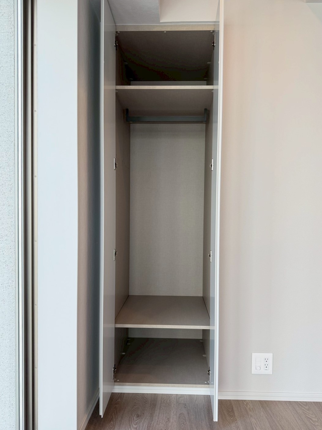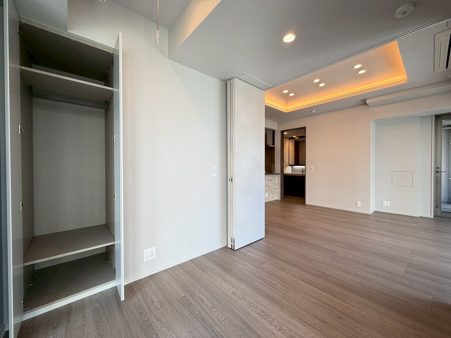 LDK内には高さに余裕のあるストレージが。キッチン横にある利点を生かして、食料品の保管庫としての使用が便利かもしれませんね。その他スーツケースやペットのおもちゃ、オフシーズンのものをすべてここに置いておけば、お部屋全体をすっきりと見せることができます。