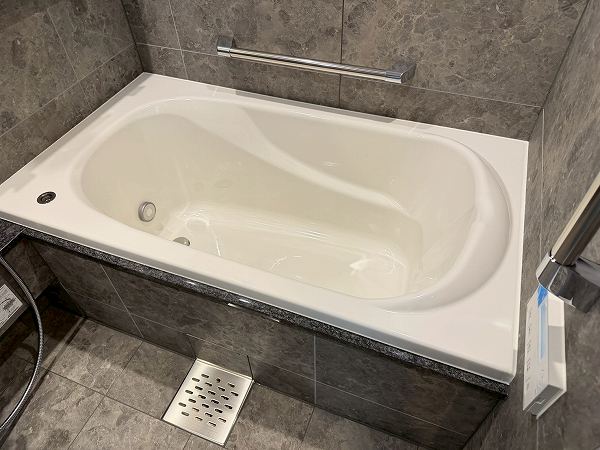 バスルームには、パネルとバスタブの側面に石調のパネルを採用し、温泉を思わせるリラックスタイムを演出。足を伸ばして、ゆったりとおくつろぎいただけます。浴室乾燥機能がついて、お忙しい方も時間を問わずに洗濯物を快適に乾かすことができそうです◎