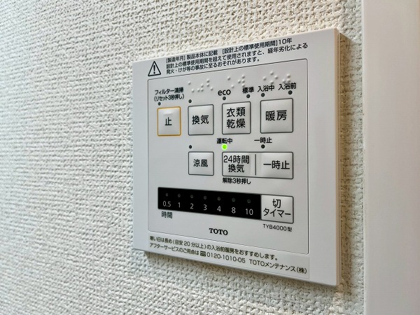 壁面のパネルには木目調のものを採用。バスタブでゆったりと足を伸ばせば、1日の疲れも吹き飛びそうです。雨の日が続く季節に便利な浴室乾燥機能や、寒い冬にありがたい浴室暖房機能がついて、機能性も抜群のバスルームです。