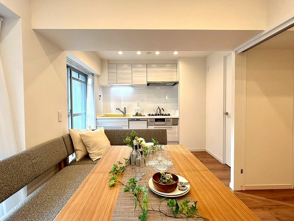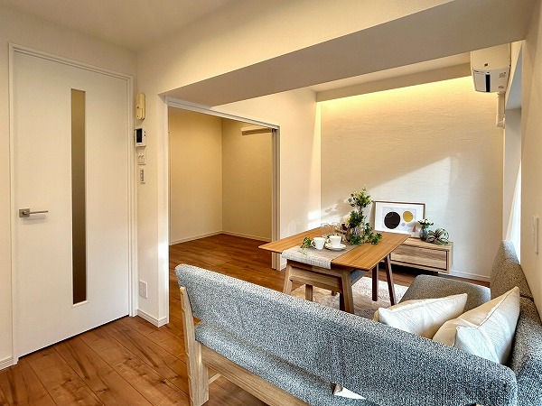今回ご紹介した『マンションニュー恵比寿』は、恵比寿駅から徒歩3分という利便性の高い立地に佇むマンションです。恵比寿駅周辺には人気のレストランやショッピングエリアが充実しており、暮らしやすさも魅力のひとつ。駅直結のアトレには、雑貨店から飲食店まで幅広いお店が揃っています。また、徒歩圏内には「恵比寿ガーデンプレイス」があり、オフィスビルやレストラン、ショッピング施設、集合住宅などが集まる大型複合施設として知られています。美術館やミニシアターも併設されており、休日のお出かけ先にもぴったり。マンション周辺にも飲食店が多く、外食派の方にも嬉しい環境です。2LDKのお部屋は南向きで、陽当たり・風通し共に良好。2面採光のため室内は明るく、広々とした開放感が感じられます。隣接する洋室にはスライドドアが設けられており、リビングダイニングと一体で使うことも可能。ライフスタイルに合わせて柔軟に使える点が魅力です。キッチンは壁付けタイプのため、料理に集中したい方におすすめ。約5帖の洋室にはクローゼットが備わっており、衣類をしっかり収納することでお部屋をすっきりと保てます。開放感のある空間で、ゆとりのあるひとり暮らしを楽しみたい方におすすめのお部屋です。 ライター:kanna【26A16】