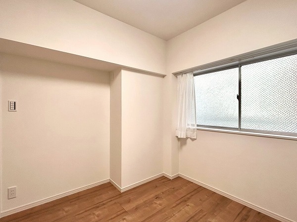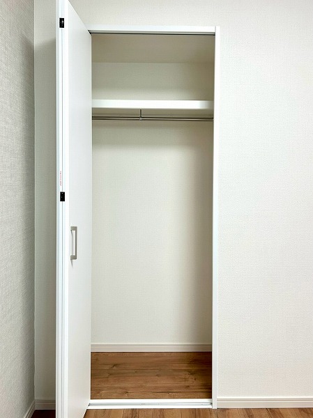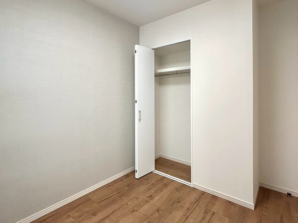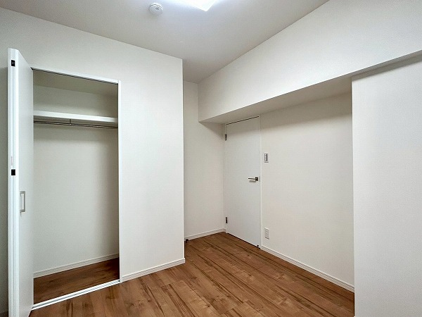 約5.0帖の洋室はベッドルームとして使うのがおすすめ♪クローゼットが設置されているため、収納を増やさずベッドを広々と置けそうですね。木目調のフローリングは温かみを感じます。