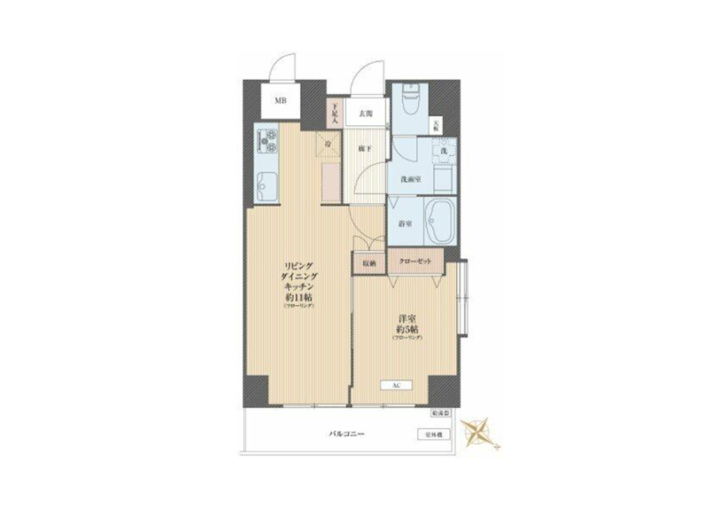 今回の舞台は『朝日中目黒マンション』の10階に位置する1LDK。2025年11月にリノベーションが施された室内は、まるで新築のように隅々まで綺麗な状態です。縦長のレイアウトなので、リビングスペースとダイニングスペースを効率良く棲み分けして配置することが出来そうです。