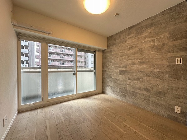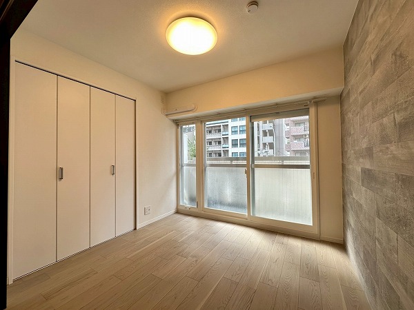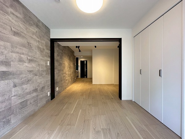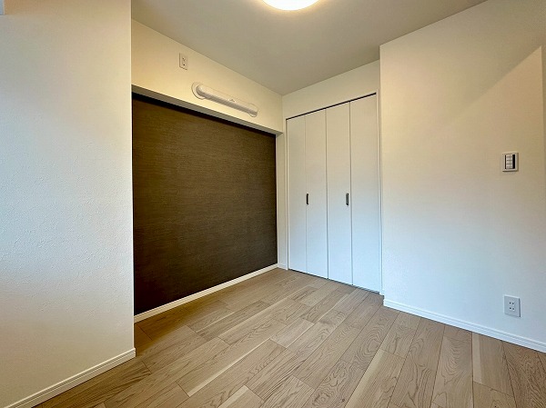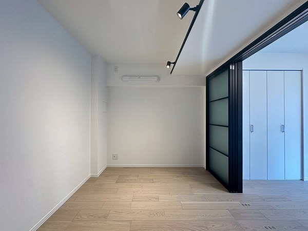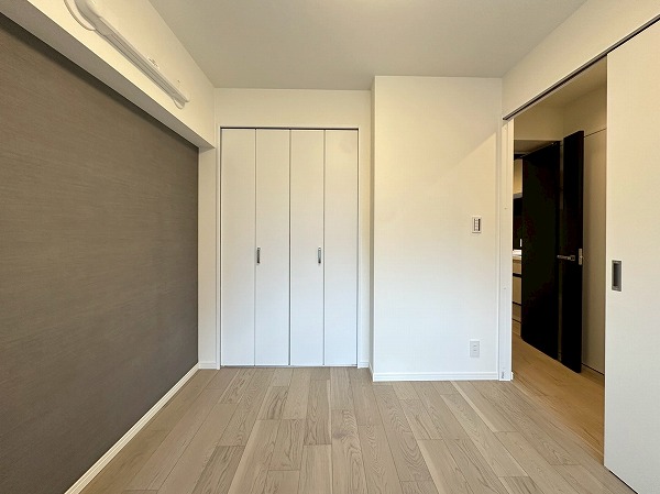 リビングの奥には、おおよそ4.5帖の洋室が併設されています。バルコニーに面しているので、陽当たり&風通し良好♪ベッドは2つ並べて置ける広さがあります。毎朝心地の良いお目覚めが期待できそうですね♪一部エコカラットも採用されています。