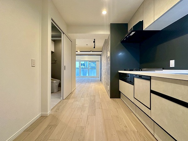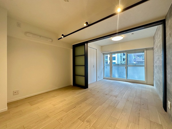 2025年9月末に新規内装フルリノベーションが完了したばかりの2LDKのお部屋をご紹介します。南西向きで陽当たり良好♪どんな色の家具やカーテンも合わせやすい、シンプルでスタイリッシュな内装デザインが採用されています。