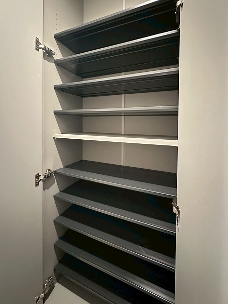 白で統一された、清潔感溢れる玄関。備え付けのシューズボックスはトールタイプで大容量です。ご家族全員分の靴を綺麗に保管できます。一部姿見も備わっているので、外出前の身だしなみチェックもバッチリ◎