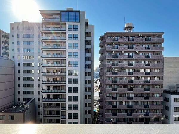 大通り沿いにどっしりと佇む白い建物が『ニックハイム中目黒』。地上11階建て、総戸数81戸のマンションです。過去に大規模修繕工事が行われ、綺麗な外観が保たれています。
