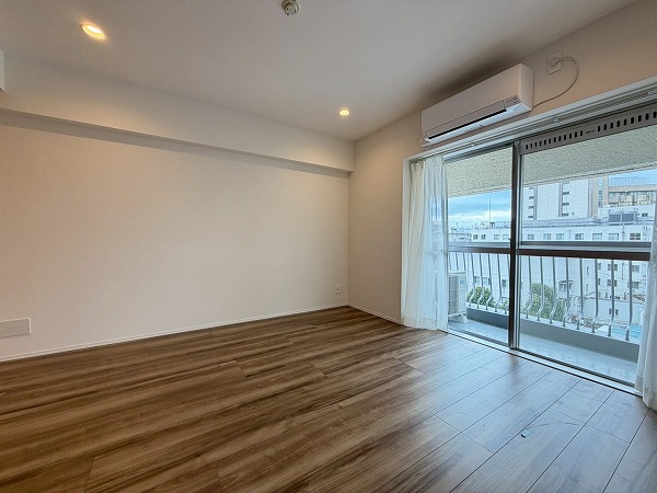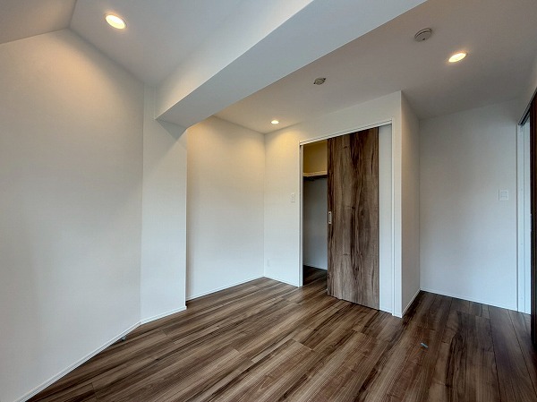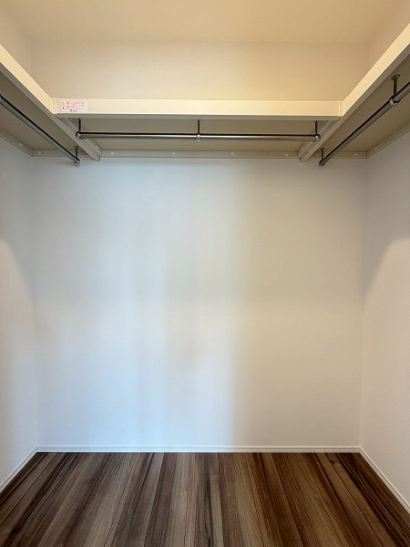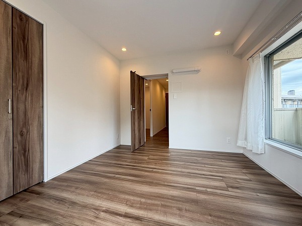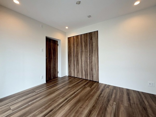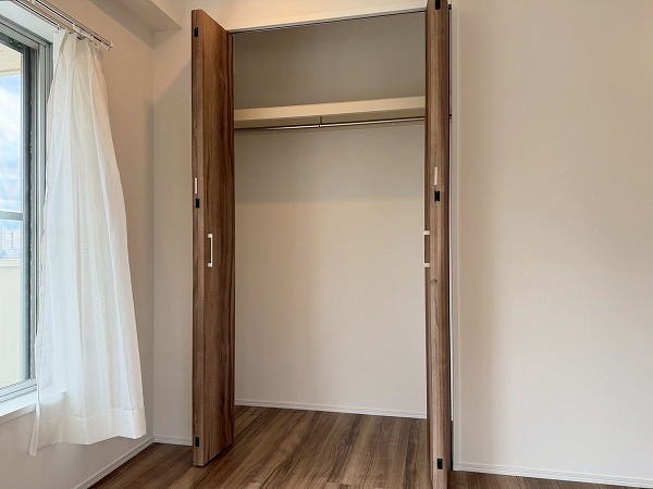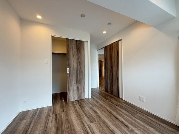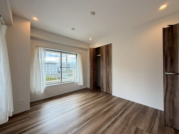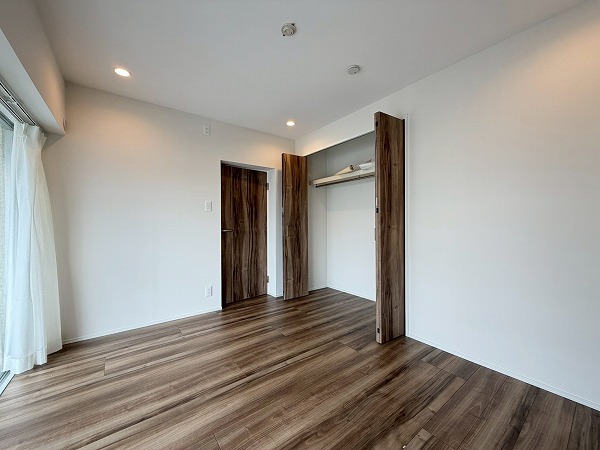 リビングの奥にある洋室は、おおよそ6.3帖の広さがあり寝室にもピッタリ。さらには大容量サイズのウォークインクローゼットも備わっているので、季節もののコートや丈の長いワンピースなども綺麗に保管できます。