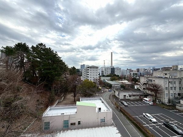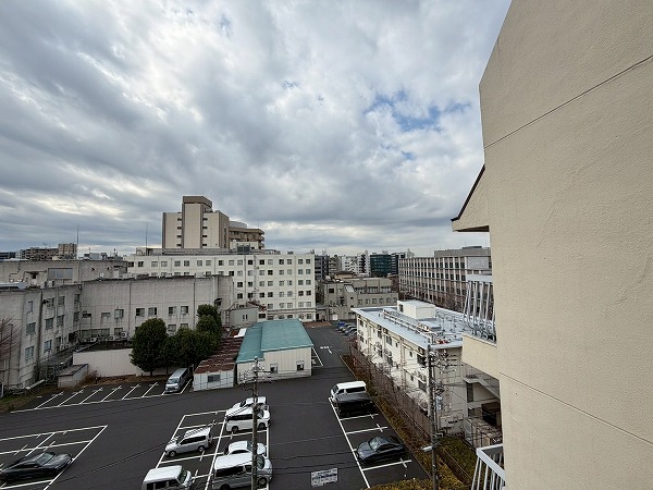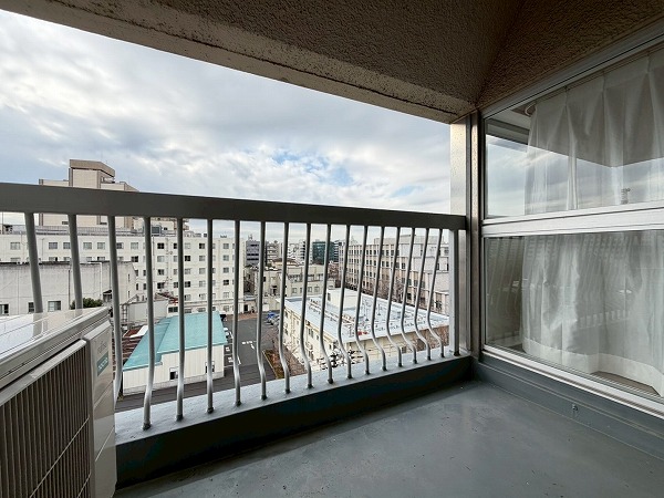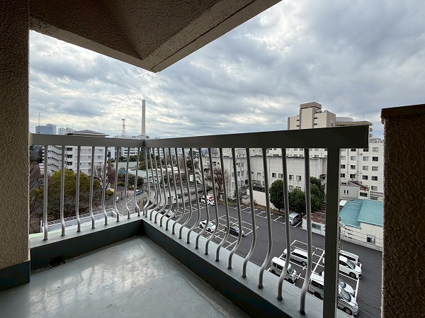 バルコニーは2箇所にあり、角住戸ならではの開放感が広がります。南西向きで日当たり良好、洗濯物も乾きやすい環境です。窓を開ければ風が抜け、都心の空を感じながら過ごせるのが魅力。眺望も抜け感があり、毎日の景色が暮らしに余白を与えてくれます。