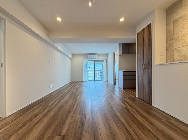 ご紹介のお部屋は、専有面積89.82㎡の3LDK。約18.1帖のリビングダイニングキッチンは、南西向きで日当たり良好、角住戸につき通風も良好です。約6.5帖×2室、約6.3帖の洋室にはウォークインクローゼット、玄関にはシューズインクローゼットを配置し収納も充実。2面バルコニーからの眺望も開放的です。2026年1月に新規内装リノベーションが完了したばかりなので、システムキッチンやバスルームなど水回りの機能も充実しています。