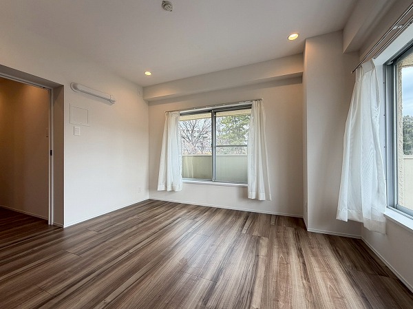 約6.5帖の洋室は2室あります。どちらもバルコニーに面しており、採光と通風に配慮された配置です。南西向きの明るさを感じながら、プライベートな時間を静かに過ごせる落ち着いた個室です。
