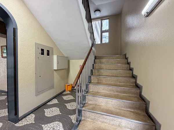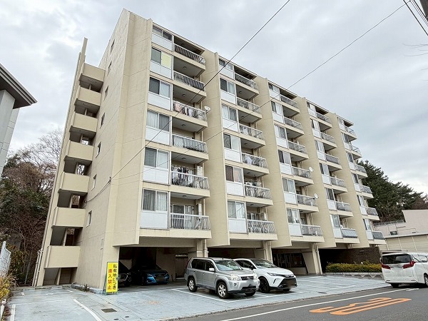鉄骨鉄筋コンクリート造地上8階建の『まんしょん中目黒』は、昭和築とは思えないほど綺麗な外観が保たれていました。オートロック完備のセキュリティ体制。敷地内駐車場やトランクルームも備え、安心感があります。