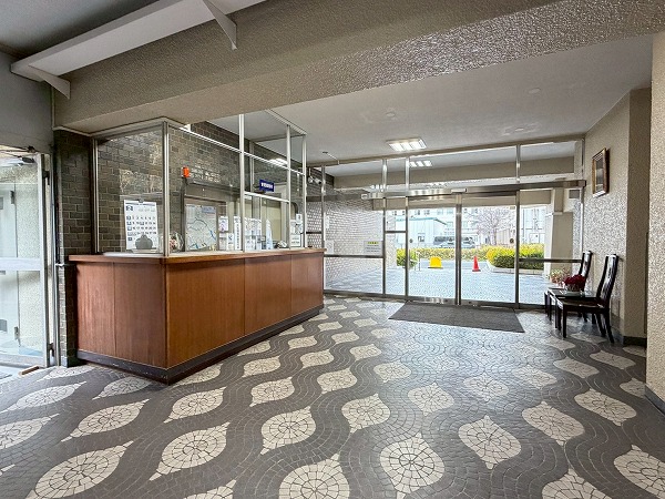 エントランスには防犯カメラと管理人室があり、セキュリティ対策は万全。ゴミ1つなく、綺麗な空間です。