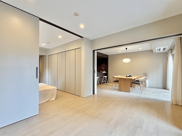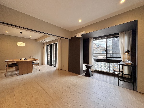 パートナーとゆったり暮らすのにピッタリな専有面積70.30㎡の2LDKです。モダンな雰囲気が漂う新規リノベーション物件✦リビングダイニングと洋室2部屋が繋がっており、居室の開放感や動線の良さを重視されている方におすすめなレイアウトです。
